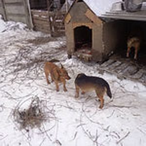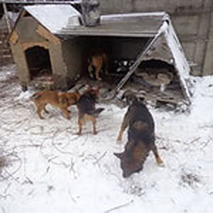 Rihanna mit ihren Kindern Lion, Yogy, Grace & Kevin. Sie wurden vorerst provisorisch im "Garten" untergebracht, bis alles fertig ist. Die Hütten dort sind mit dicken Decken & Kissen ausgelegt und wurden so zugebaut, dass Wind und Schnee draußen bleiben. Das war zwar nicht sehr schön, aber fürs erste ganz praktisch. Auf dem Feld im alten Tierheim waren sie völlig dem Schnee ausgeliefert, darum war das schon eine Verbesserung der vorigen Situation. Sobald das Wetter besser wurde konnte es weiter gehen!