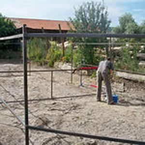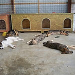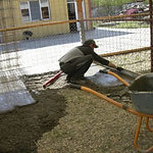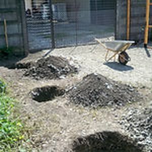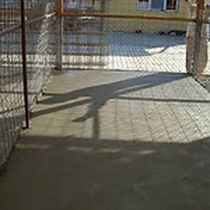 Manche Hunde haben angefangen, sich unter dem Gitter durchzubuddeln. Darum wurden die Zwingerböden betoniert.